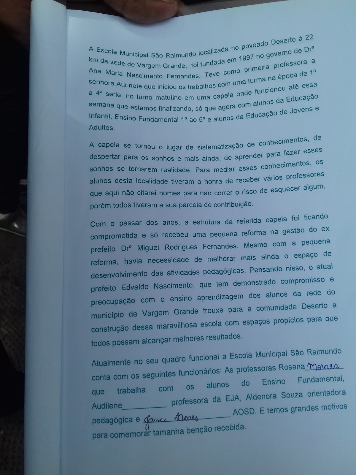 unidade de ensino e contou com a presença do Prefeito Edvaldo Nascimento, do vereador Abdias Cidrão, da liderança política maior de Vargem Grande, Dr. Miguel Fernandes, secretários municipais, lideranças políticas e comunitárias e vários moradores da região.