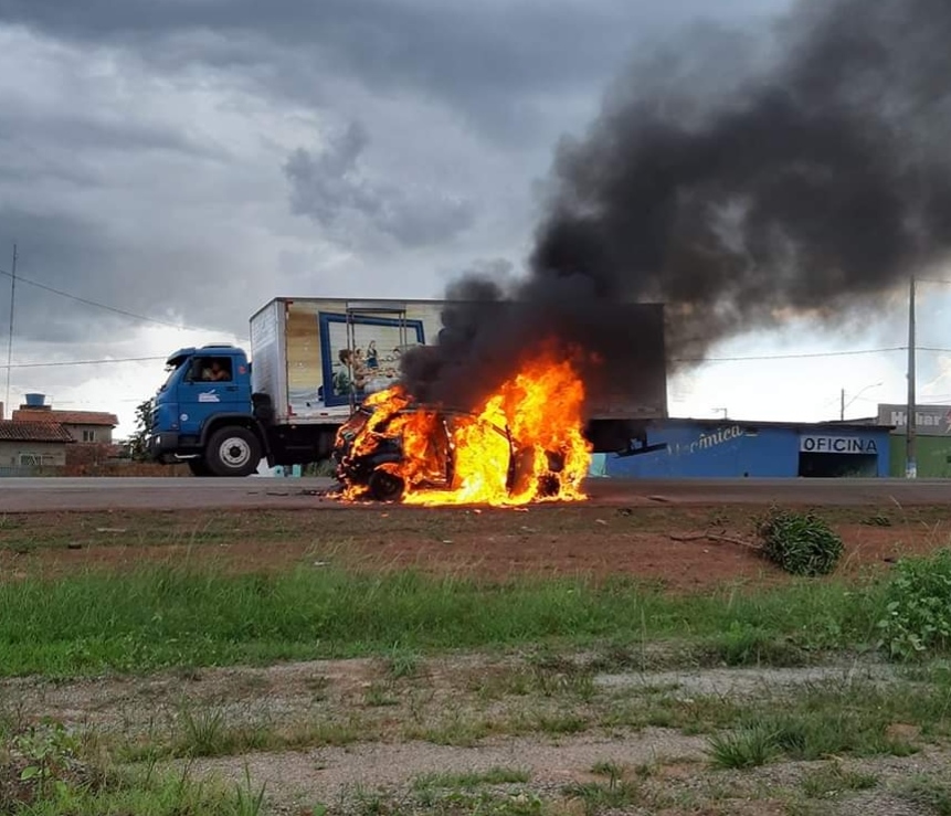 O veículo foi totalmente consumido pelas chamas, até o momento não há informações sobre o que teria provocado o incidente.